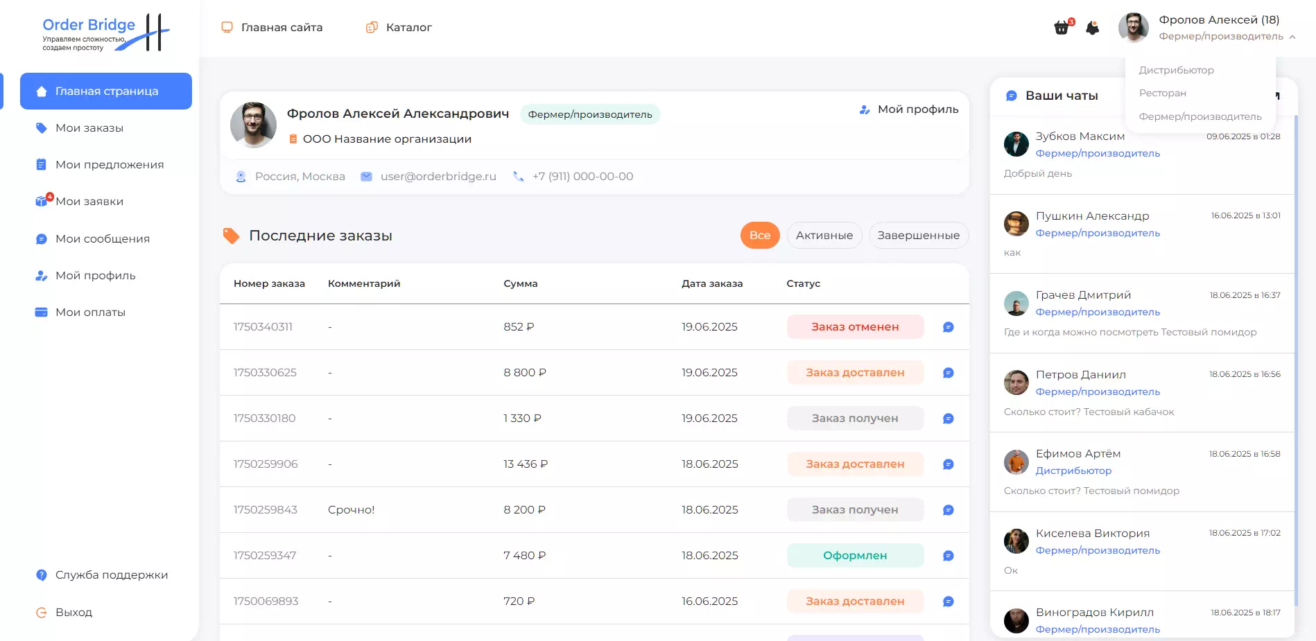 Order Bridge - это компания, которая помогает поставщикам и клиентам всех категорий автоматизировать процессы и ускорять выполнение заказов, предоставляя им надежные инструменты для эффективной работы с клиентами и партнерами..